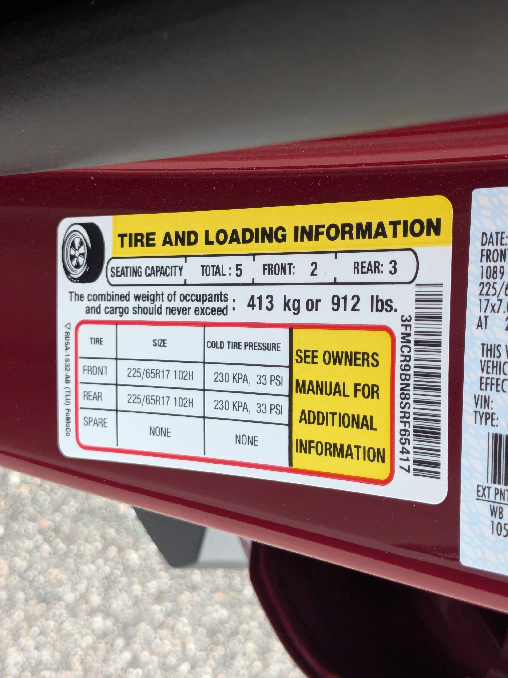 - Front Tire Size: P225/65HR17