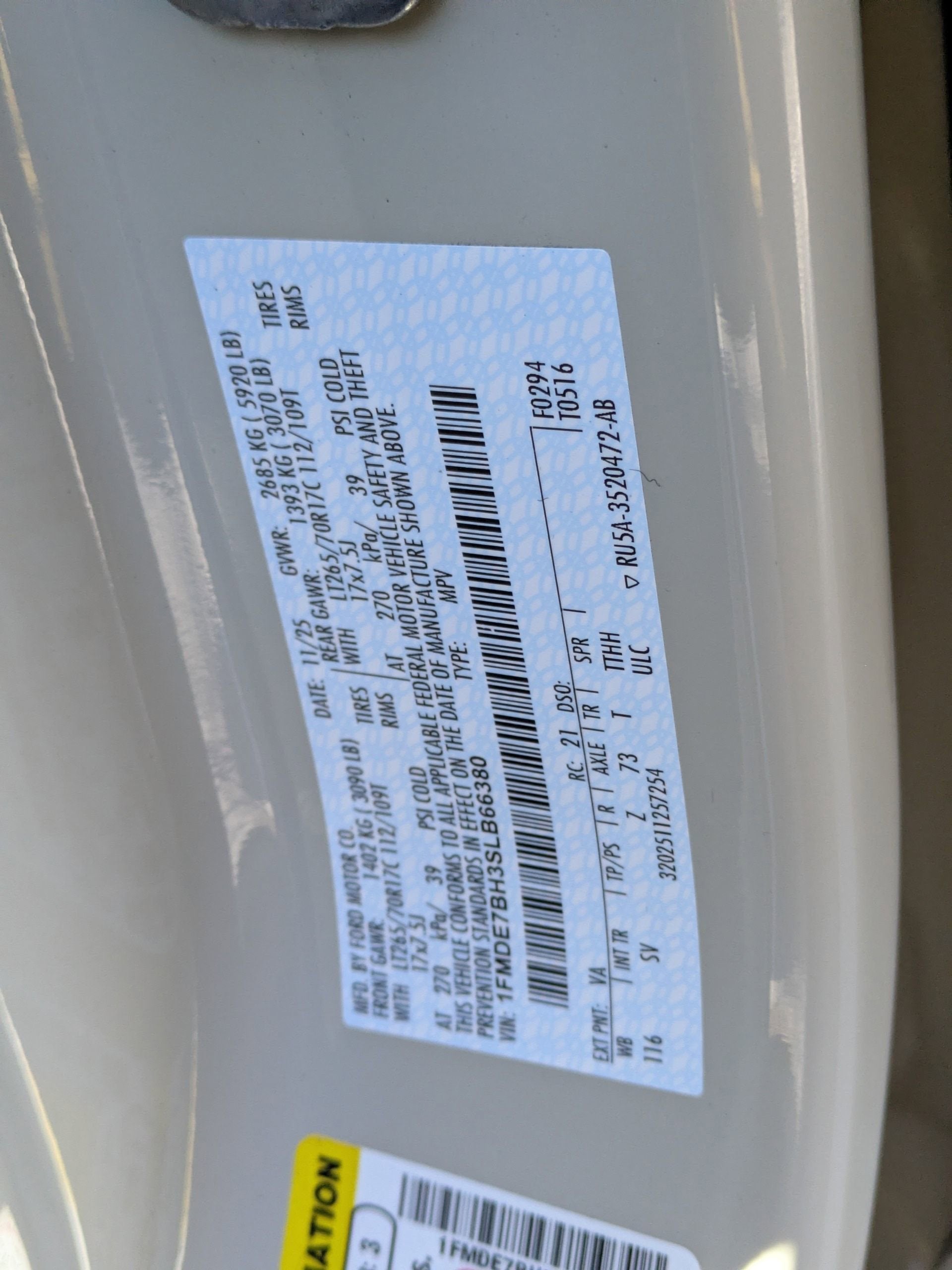 - Gross Vehicle Weight Rating Cap (lbs): 5920