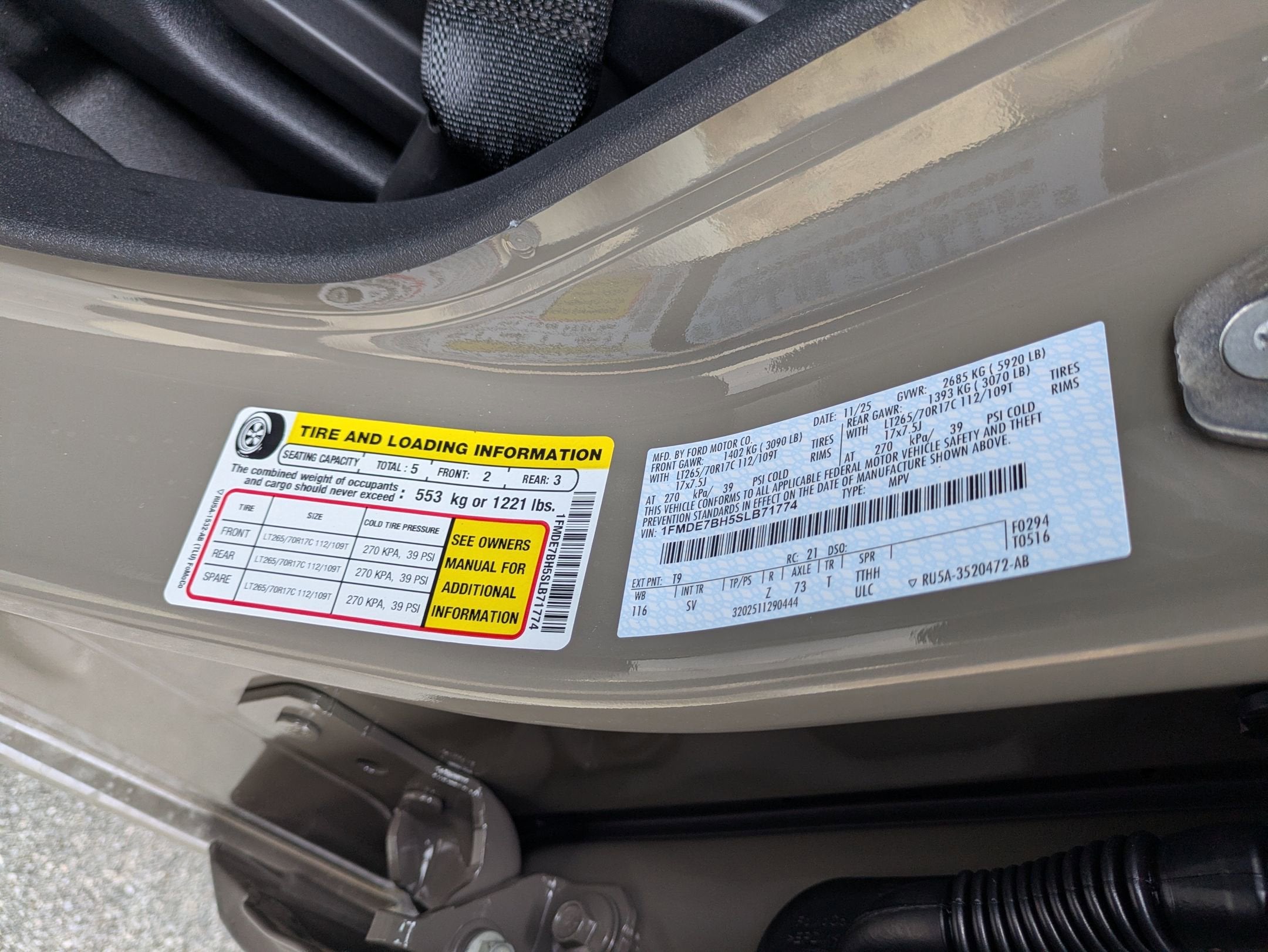 - Tires: P255/75R17 A/T -inc: full size spare tire w/TPMS