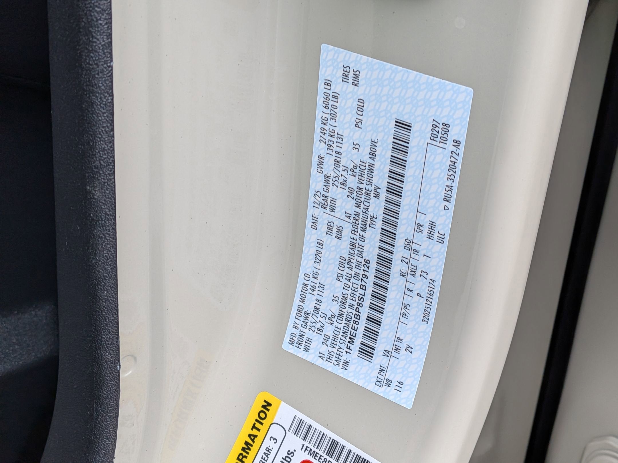 - Tires: P255/70R18 A/T -inc: full size spare tire w/TPMS