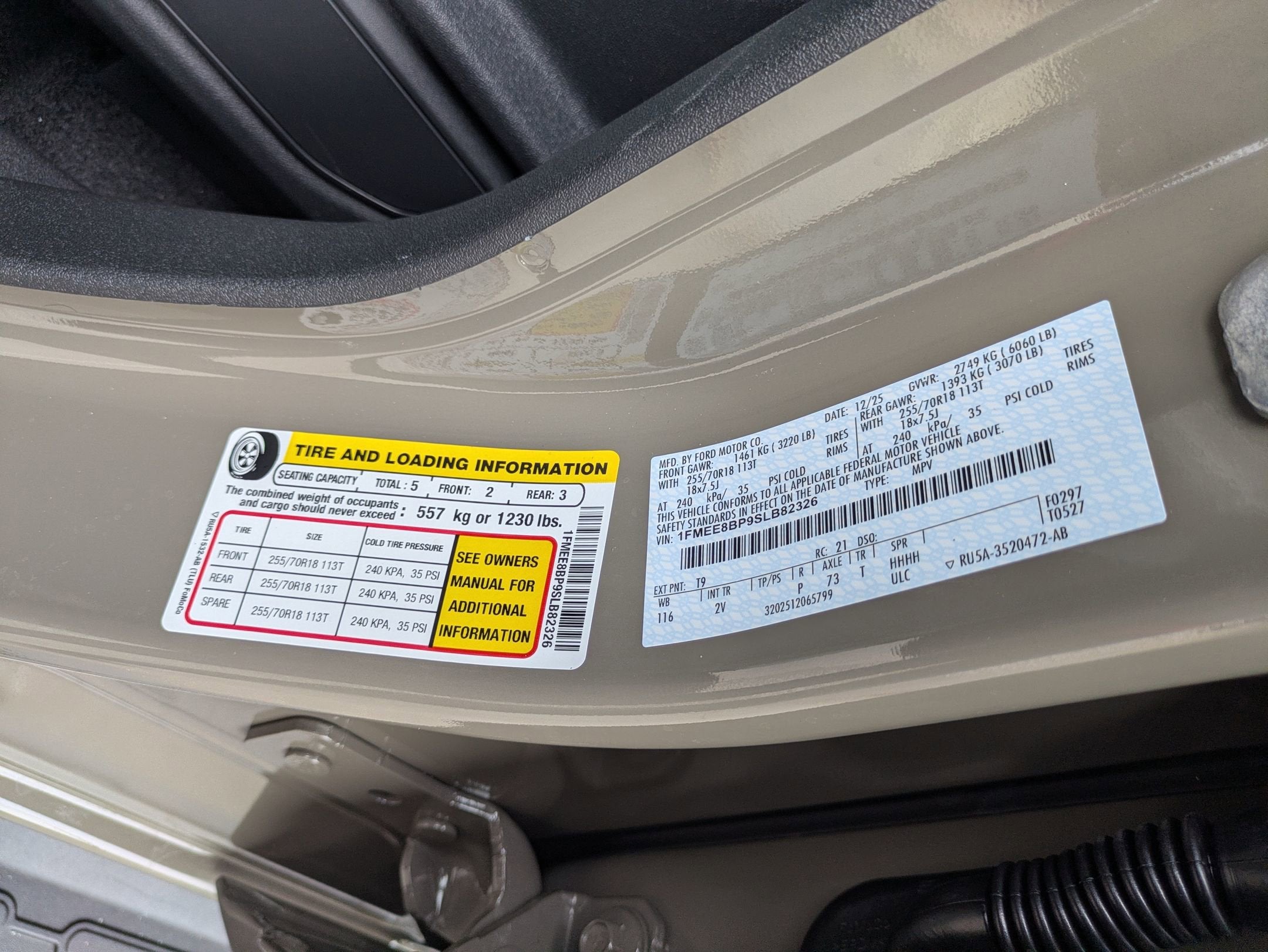 - Tires: P255/70R18 A/T -inc: full size spare tire w/TPMS