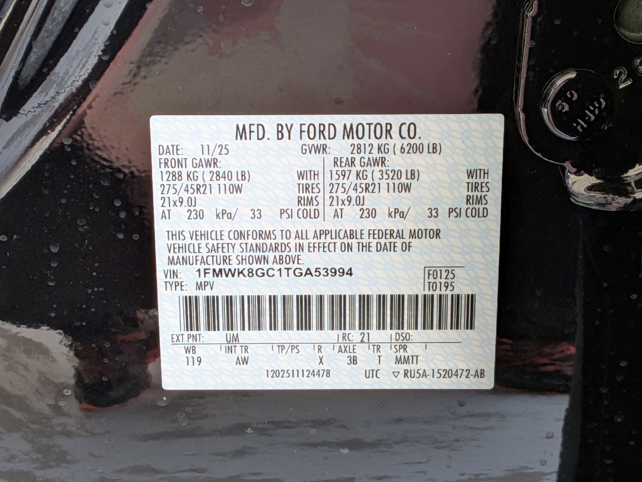 - Tires: P275/45R21 AS BSW