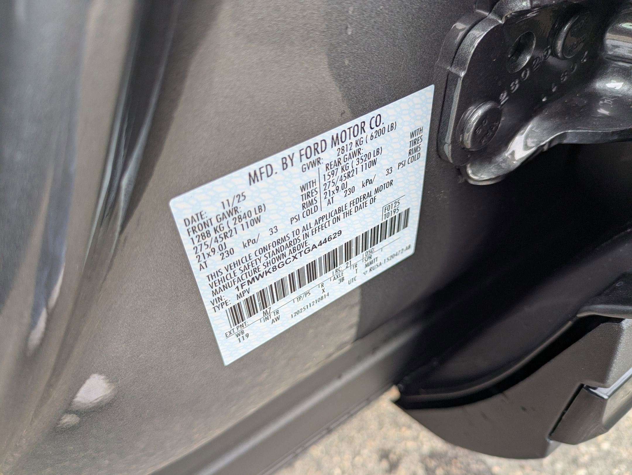 - Front Tire Size: P275/45WR21
