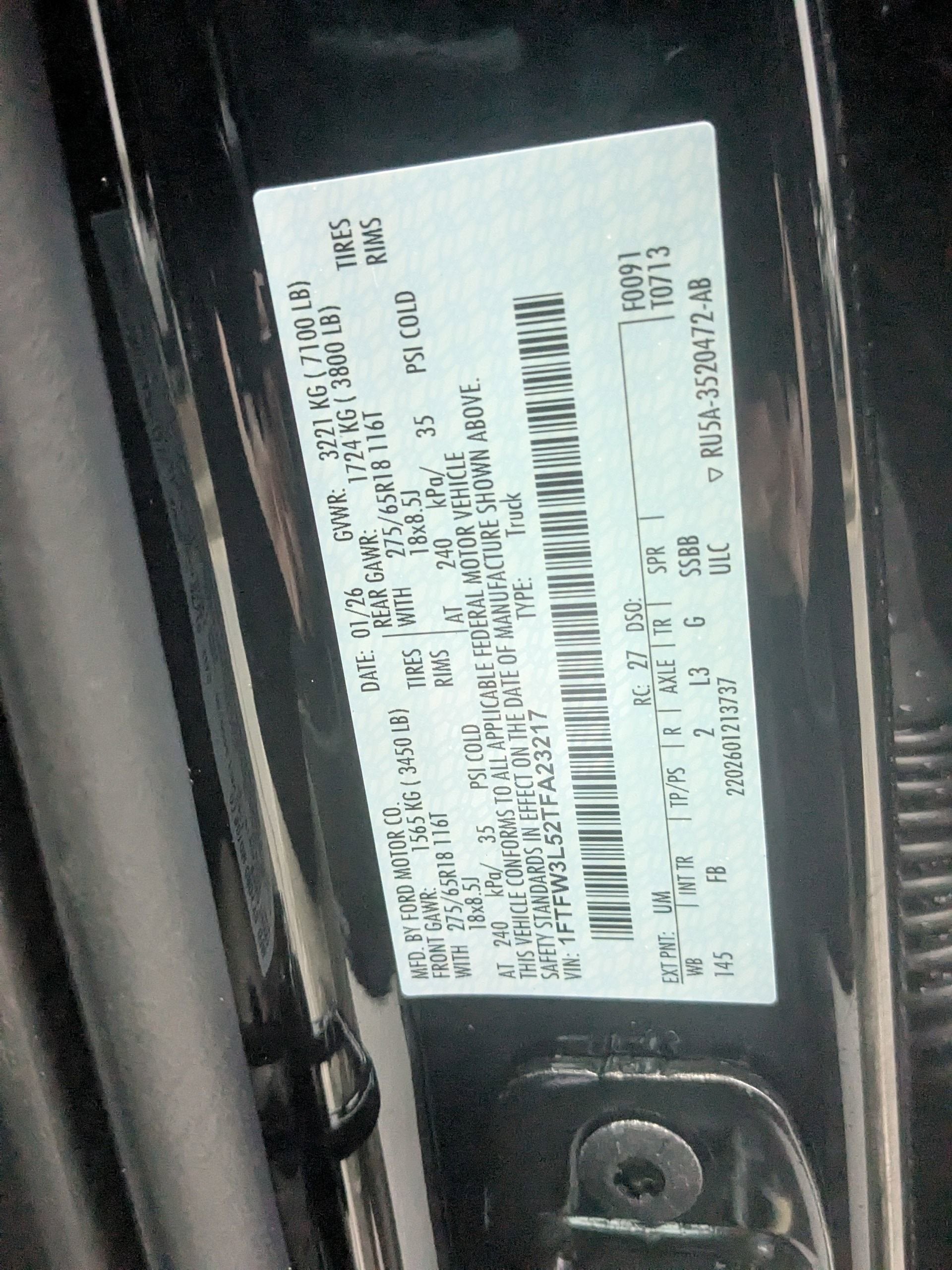 - ENGINE: 5.0L V8 -inc: auto start-stop technology GVWR: 7 100 lbs Payload Package 3.31 Axle Ratio 50-State Emissions Standard equipment on 2.7L (99P) and 5.0L V8 (995) Automatically added to 3.5L Ecoboost (998) and 3.5L PowerBoost full hybrid (99D) orders from dealers located in the following California emissions states: California Massachusetts New York Oregon Pennsylvania Vermont and Washington Available 3.5L Ecoboost (998) and 3.5L PowerBoost full hybrid (99D) option for dealers in federal states for all order types (retail / stock / fleet): Arizona Connecticut Delaware Idaho Maine Maryland Montana New Hampshire New Jersey Nevada Ohio Rhode Island and West Virginia Available option for dealers located in all states for retail orders Available option for dealers located in all states for commercial / rental fleet orders Available option for dealers located in all states for government fleet orders w/ship-to addresses in California emissions states