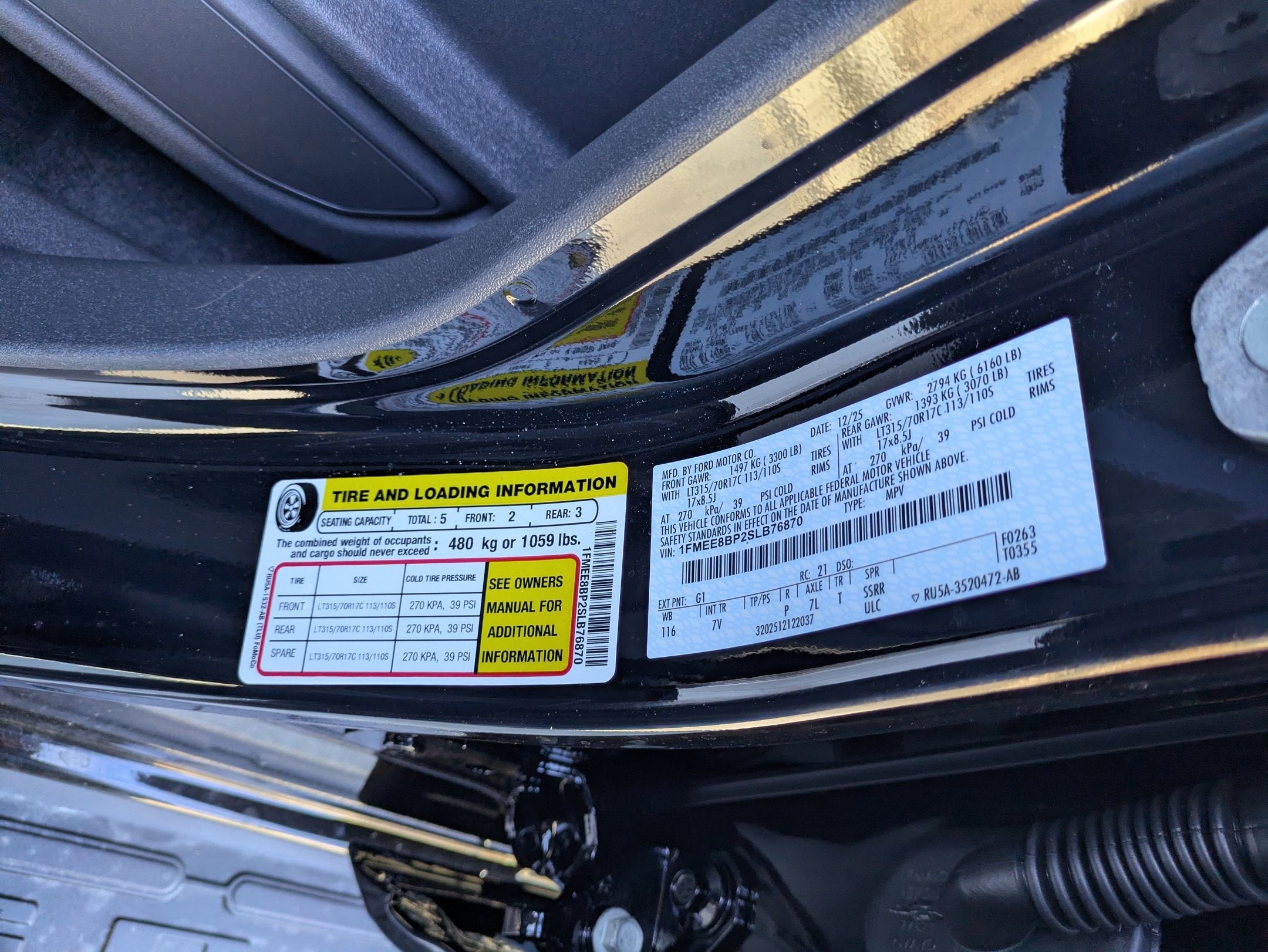 - Tires: P255/70R18 A/T -inc: full size spare tire w/TPMS