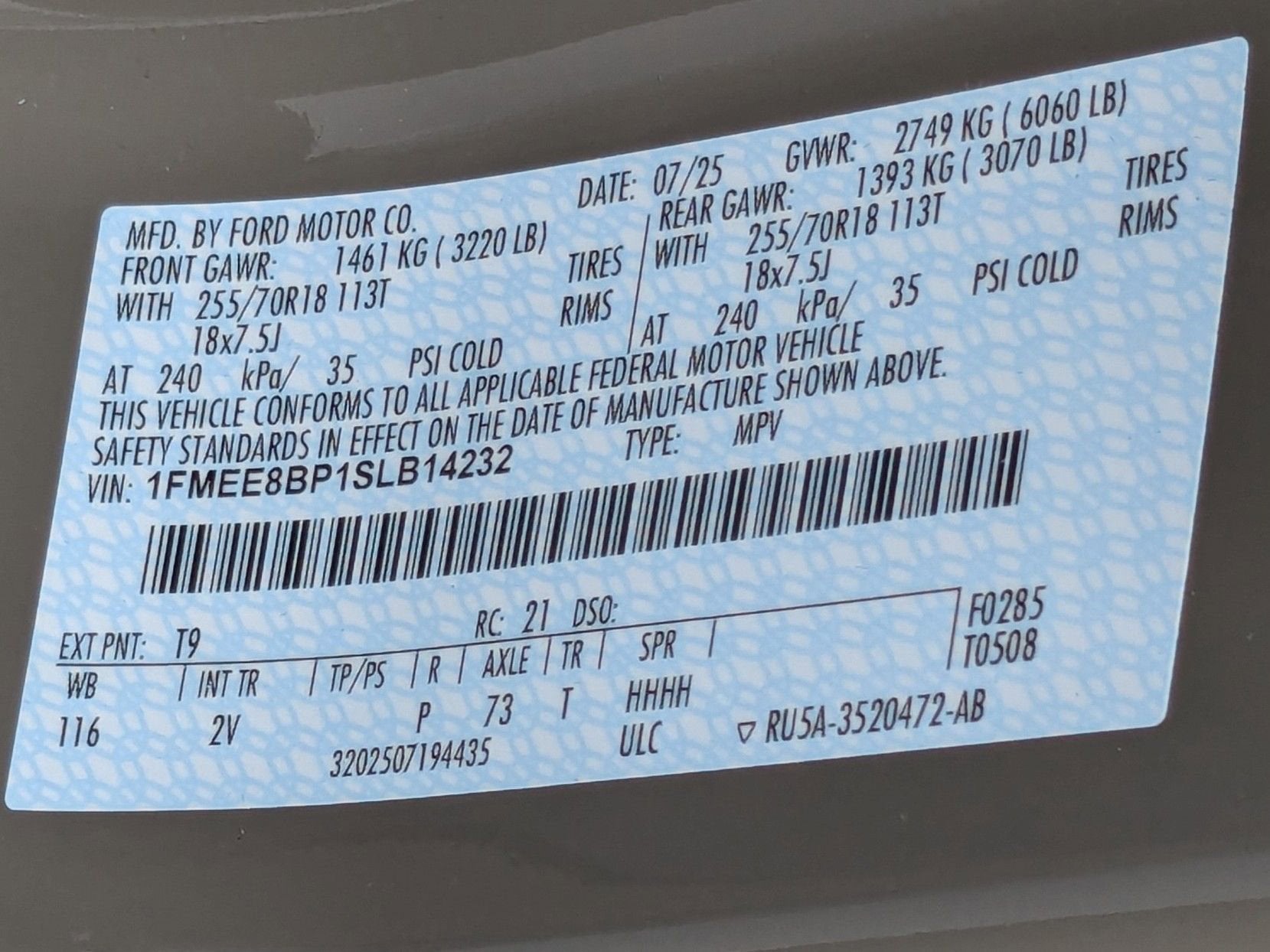 - Gross Axle Wt Rating - Rear (lbs): 3070
