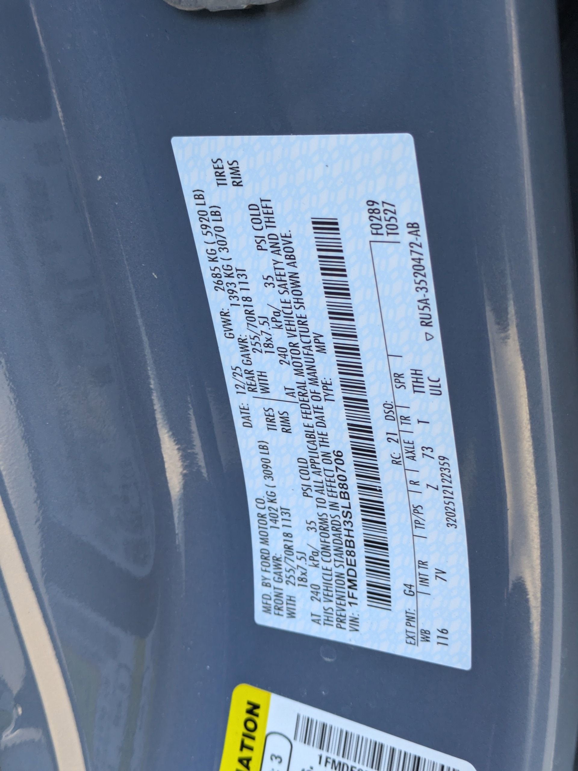 - Gross Vehicle Weight Rating Cap (lbs): 5920