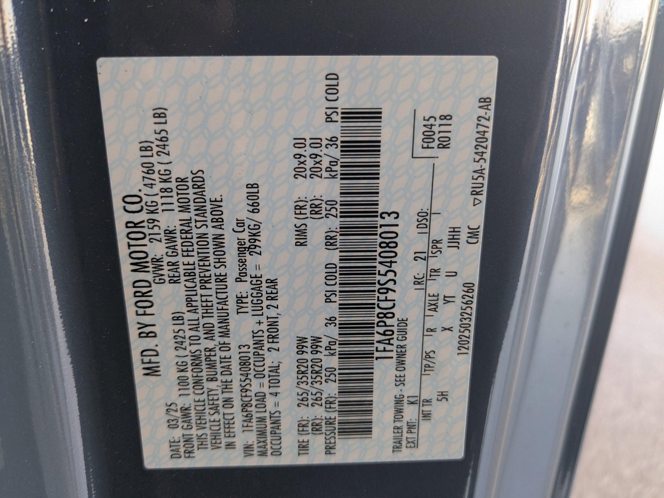- Vehicle Name: Ford Mustang