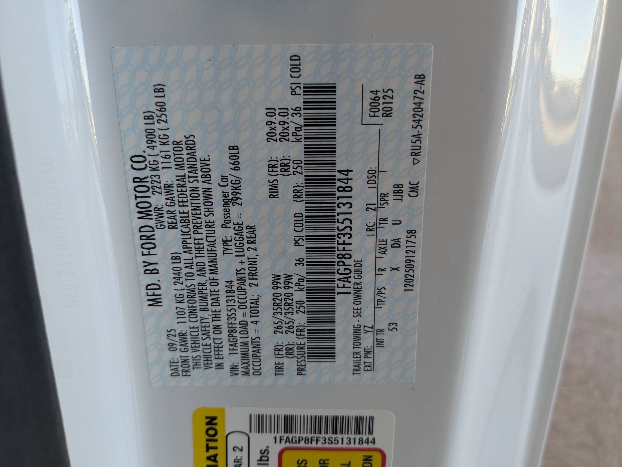 - Vehicle Name: Ford Mustang
