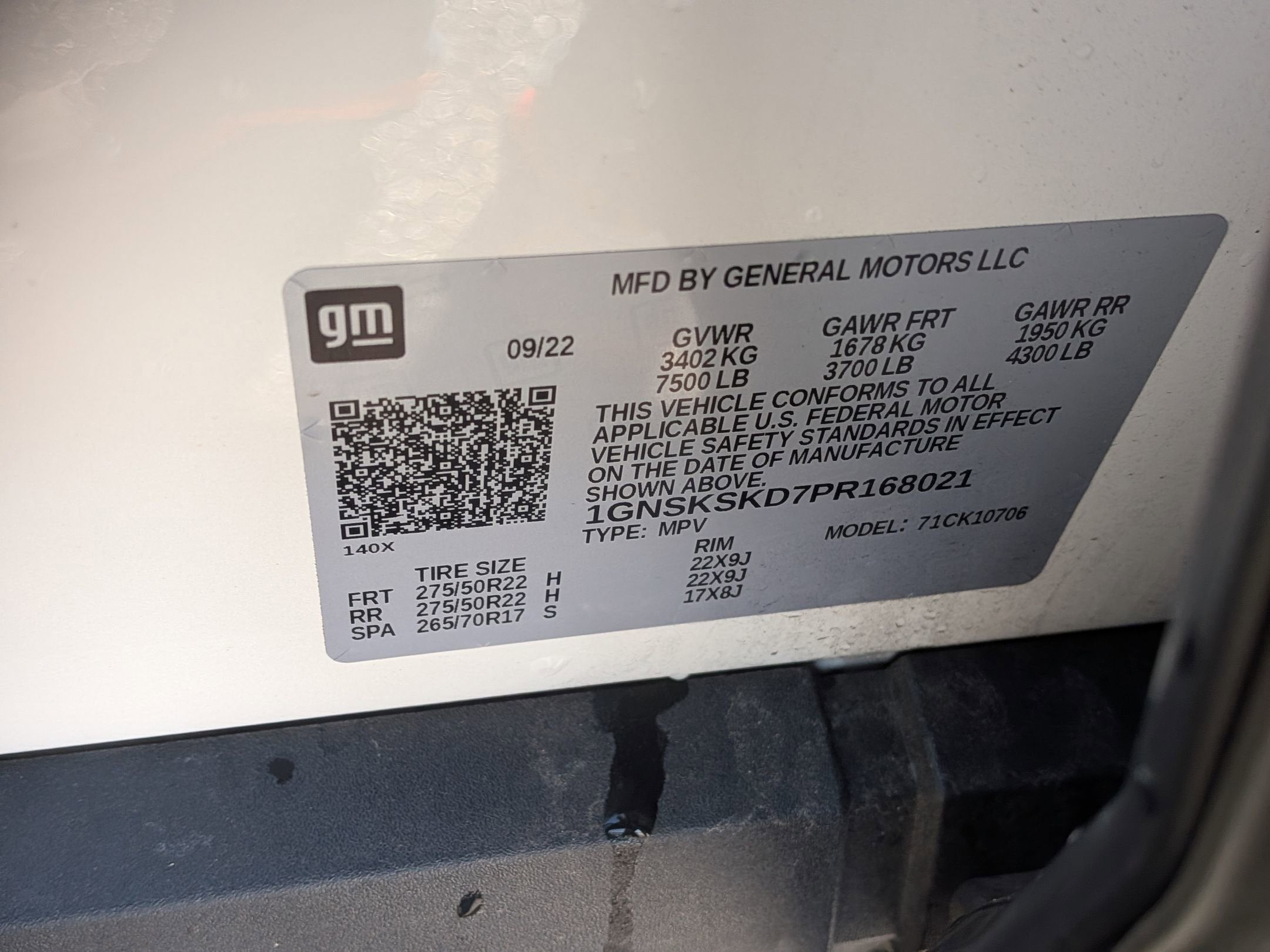 - Front Tire Size: 275/50R22SL