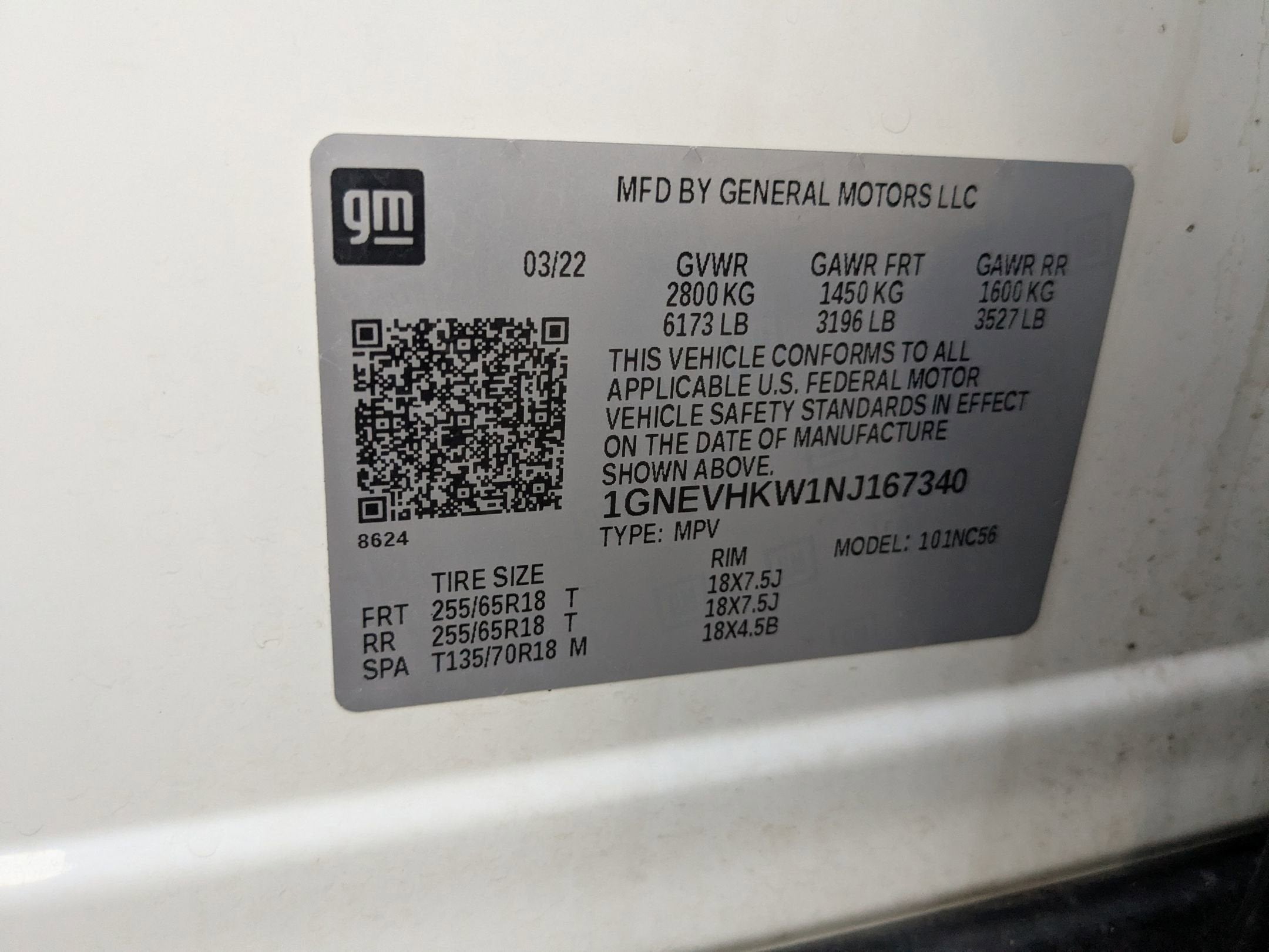 - Tires, P255/65R18 all-season blackwall