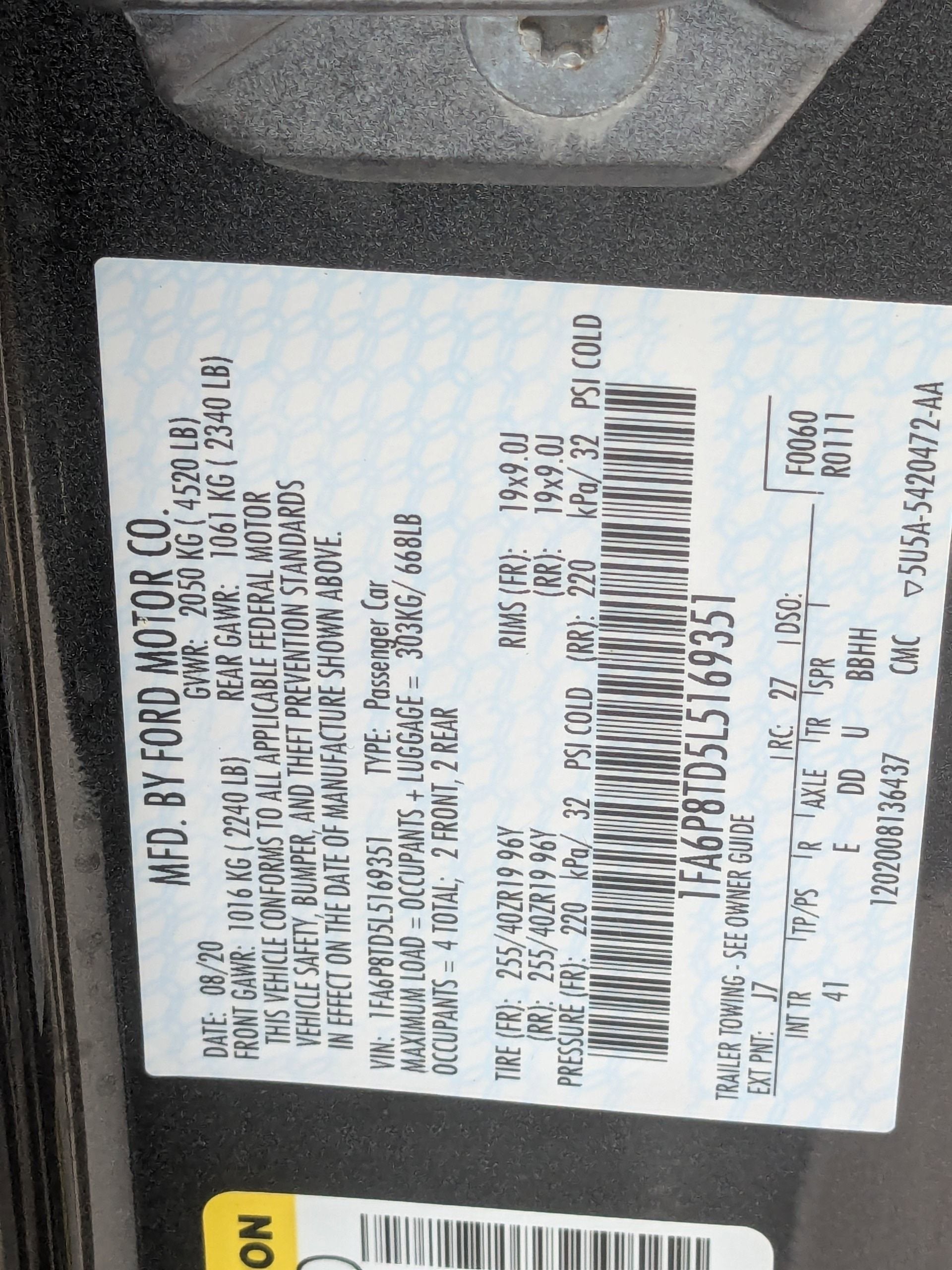- Vehicle Name: Ford Mustang